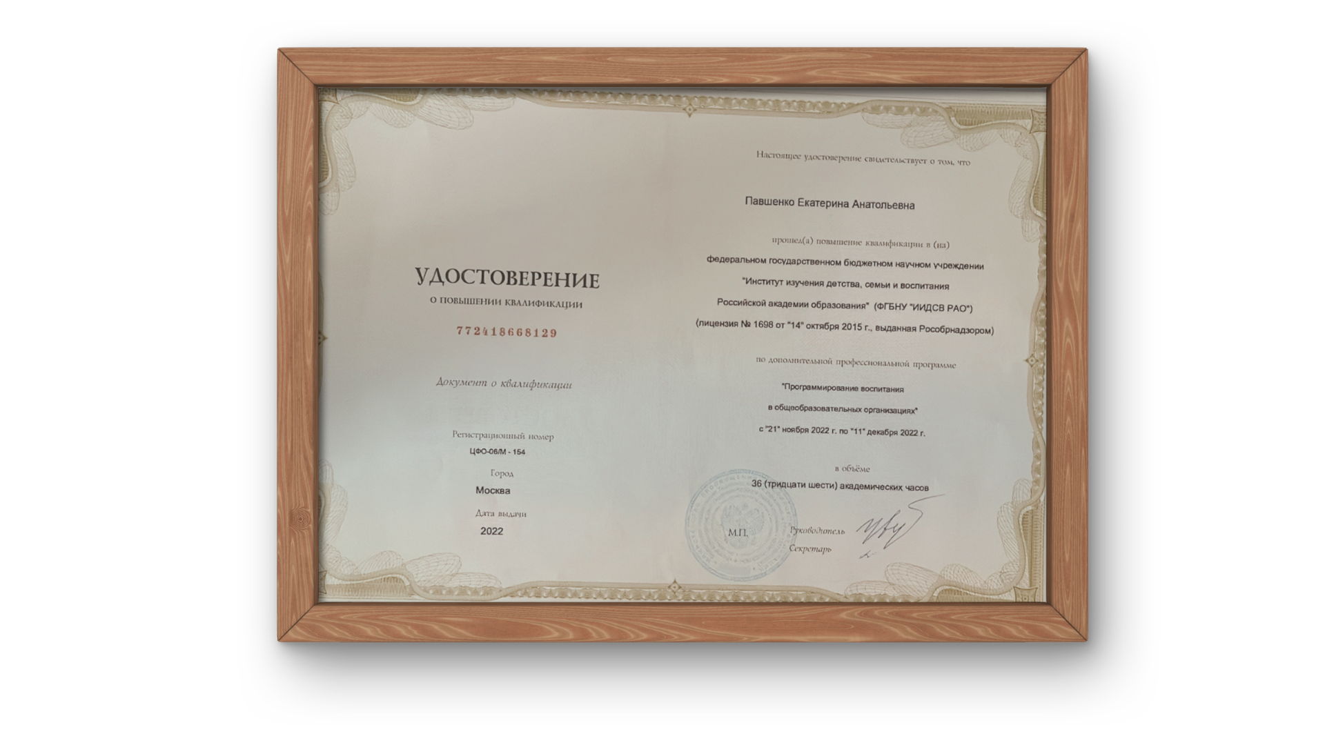 - Кандидат педагогических наук;
